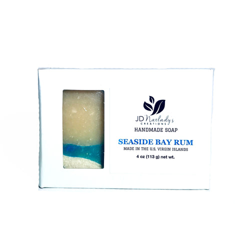 JDNatlady's Creations brings you a touch of the Virgin Islands with this Seaside Bay Rum Soap that is made on St. Thomas where bay rum originated. This bay rum bar soap is handmade with a classic bay rum scent that gives you the fresh, tropical scent of Bay Rum every time you shower or use it in your bath. Not only does this soap smell great, but it is also moisturizing and its blue, cream, and tan coloring will remind you of the seaside areas of St. Thomas, St. John, or St. Croix in the Virgin Islands. Get the fresh, tropical scent of Bay Rum in your home today. Purchase your own bar of Seaside Bay Rum Soap today by adding it to your cart before they are gone!