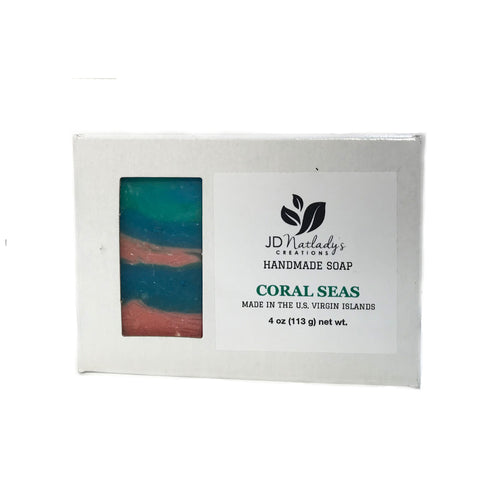 We have the perfect one for you! Our artisanal hand soap named Coral Seas Soap has a complex, sophisticated scent that will make you feel like you're on vacation. The beautiful blues and greens may remind you of the Carribean Sea. The coral swirl may remind you of living coral that you might see while diving or snorkling. It not only smells nice but would be the perfect addition to your ocean themed decor. Take a break from your everyday life and let our soap transport you to a beautiful place.