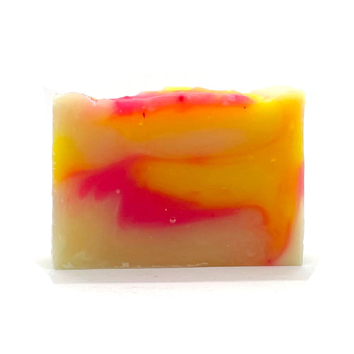 Can't head to the tropics? Enjoy your bar of this colorful, handmade artisan soap with a scent that will remind you of tropical fruit.